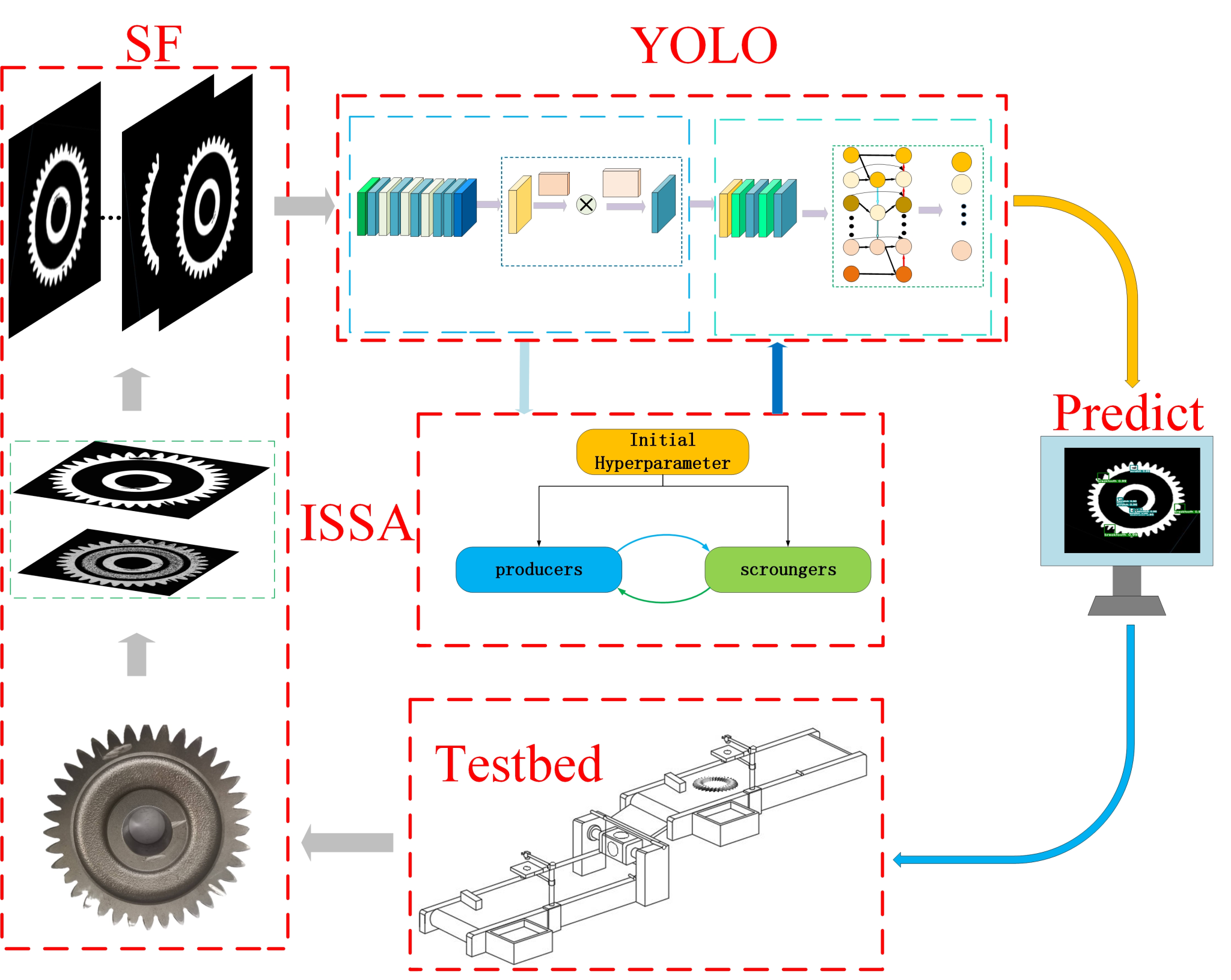 本网讯(文/图 官星伶)机械工程学院2022级硕士研究生杨帅,2023级硕士研究生周林以共同第一作者身份在国际著名学术期刊IEEE Sensors Journal (IF=4.3,中国科学院SCI综合性期刊大类2区Top期刊)上发表了题为“SF-YOLO: An Evolutionary Deep Neural Network for Gear End Surface Defect Detection”(DOI: 10.1109/JSEN.2024.3403870)的研究论文。2020级本科生黄鹏参与本文工作。我校为该论文第一通讯单位,机械工程学院王宸教授和王生怀教授为该论文的共同指导老师。