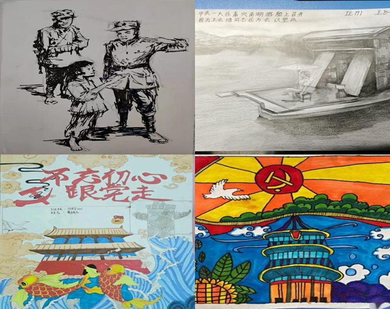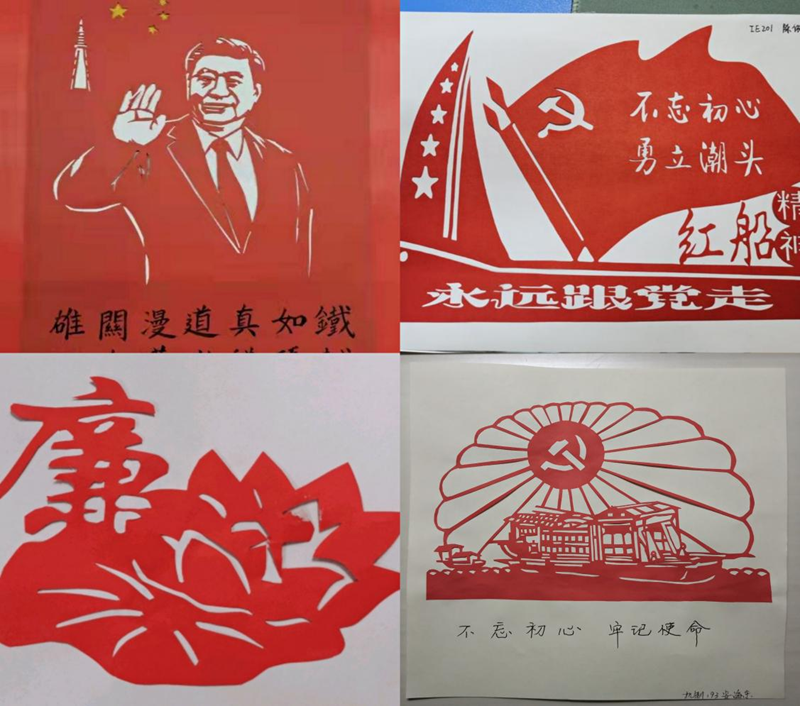 年初,百余名学生参与“美术作品中的党史”活动,同学们一边学习党史,一边潜心创作,在学习传统绘画书法、刻纸技艺的基础上,把对党的热爱寄托在作品中,用中国共产党的奋斗精神激发创作热情,以党建之美引领艺术之美。历时近3个月的时间,共创作120余件描绘党史、反映生活、讴歌时代的美术作品,涵盖剪纸、绘画、刺绣等多种类型。创作者大多为党员、发展对象、入党积极分子,他们以笔为犁,用坚定的理想信念和创作热情表达入党初心。