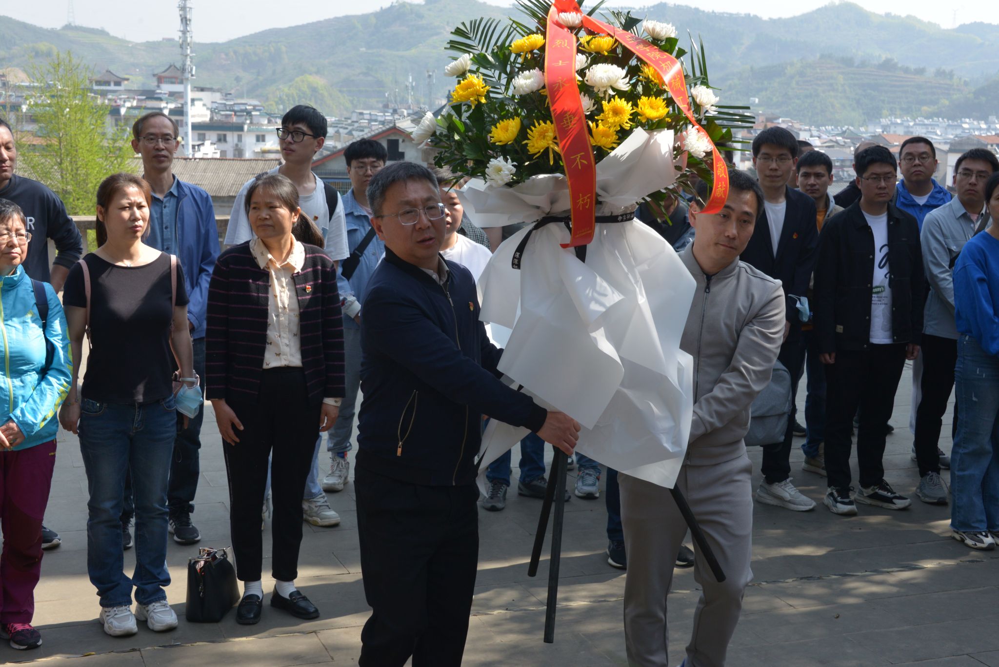 当日上午,同志们举起右拳集体在烈士纪念碑前重温入党誓词,敬献花篮,脱帽鞠躬致敬。随后,共同瞻仰了烈士墓,聆听了工作人员关于烈士们英勇事迹的详细讲解,深刻感受烈士们舍身忘我建设祖国的奉献精神和红军战士不怕牺牲对党忠诚的革命情怀。