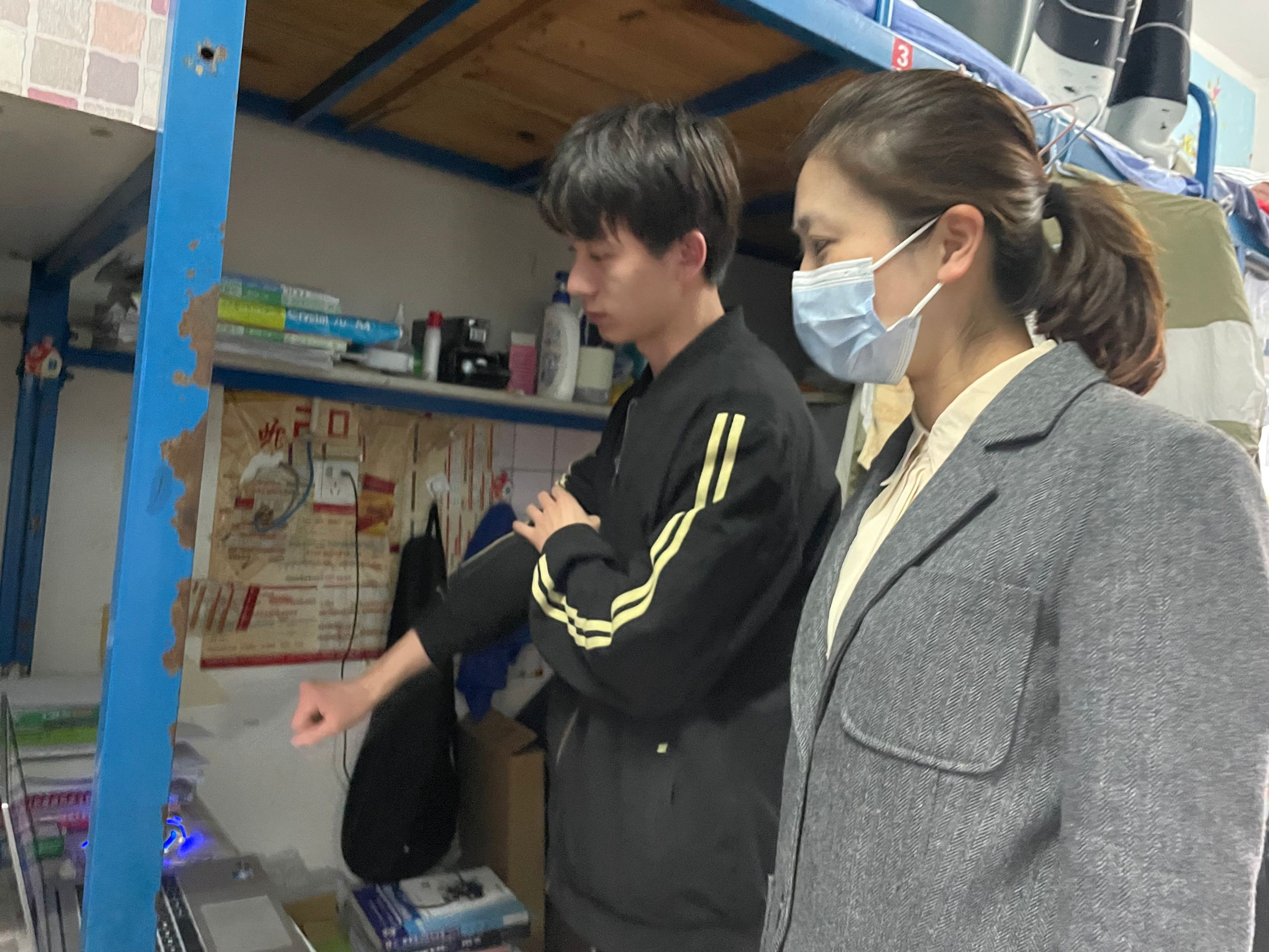 在机械工程学院2018级学生宿舍中,机械学院分党委副书记周丹详细了解了同学们的毕业设计进度和就业去向。她表示,在疫情防控常态化背景下,希望同学们理解并自觉遵守学校疫情防控管理规定,叮嘱同学们加强体育锻炼,调节良好心态,做好个人防护工作,并鼓励同学们明确未来规划,积极主动求职就业。走访过程中,学工办主任唐小燕详细询问同学们近期学习生活感受,并与同学们交流疫情防控知识,引导同学们严格遵守学校疫情防控期间校园管理工作要求,坚持青年大学习、今日校园健康打卡以及宿舍日报打卡签到。同时细心叮嘱同学们要做好宿舍消杀工作,定期通风,做好个人防护;注意天气变化,及时增减衣物,预防感冒;注意宿舍用电安全,避免发生用电起火等情况。另外,老师们还强调了谨防电信网络诈骗问题,提醒大家提高警惕,对于转账、中奖、网络刷单等信息要多加辨别,谨防上当受骗。