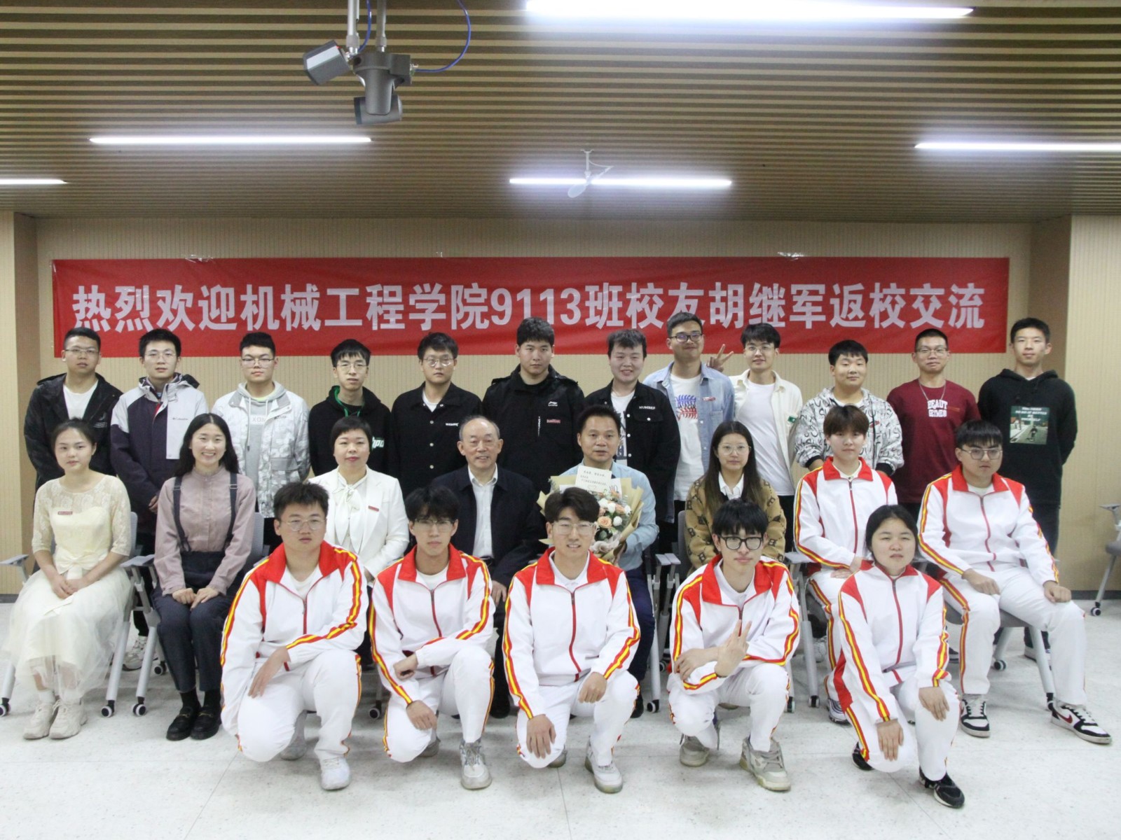 5月9日,风和日丽,风景如画。机械工程学院9113班校友胡继军返校交流大会在产教大楼二楼ZX-203报告厅举行。机械工程学院分党委书记崔海英、机械工程学院原机械工程系主任常治斌教授、辅导员及学生代表欢聚一堂,回忆青葱岁月,共襄学校发展。