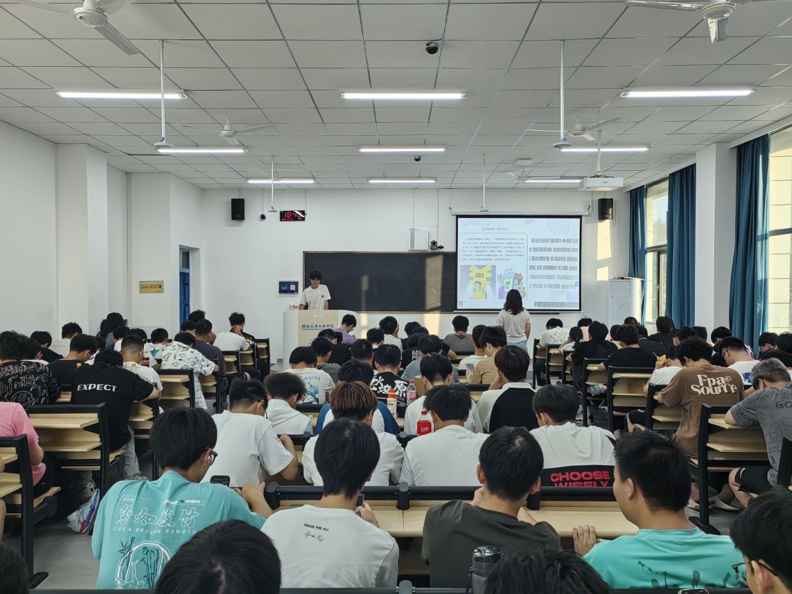 会上,各班班主任详细介绍了《民法典》的基本概念和重要意义,围绕三个典型案例展开了详细讲解。在校园贷的案例中,分析了陷入信贷平台陷阱中如何正确面对校园贷的赔付回归正常生活,提醒同学们注意鉴别信贷平台非法行为,养成良好的消费观念。在“表情包”斗图案例中,分析了“表情包”斗图中存在的侵犯隐私权的法律风险,提醒同学们重视对个人及其他肖像权的保护,避免违法行为发生。在“老人跌倒扶不扶”案例中,针对同学们见义勇为的顾虑,分析了《民法典》设立的见义勇为免责条款,为见义勇为者吃了“定心丸”。