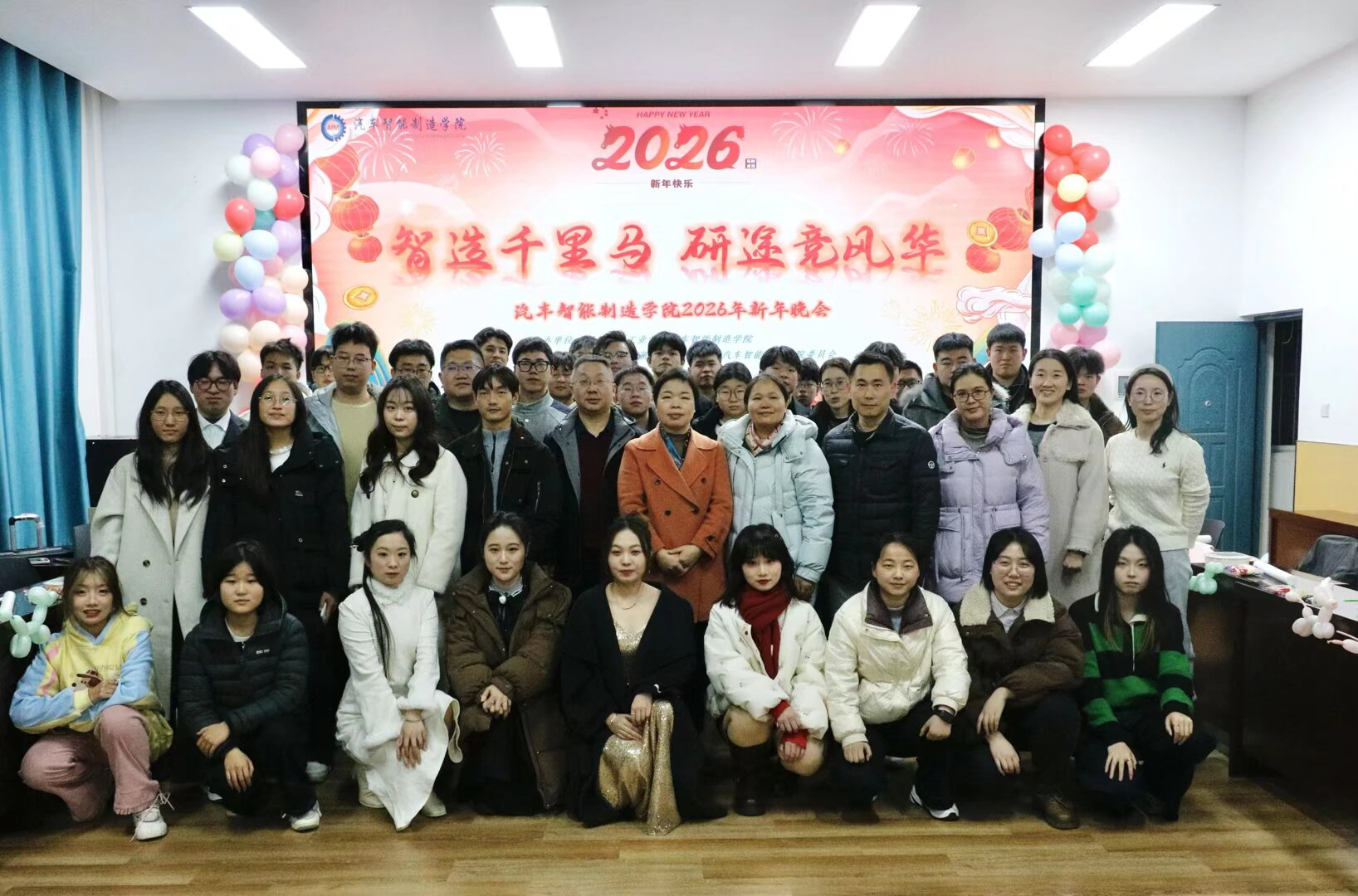 1月9日晚,TYC234CC太阳成集团首届研究生新年晚会在学院J305会议室精彩上演。晚会以“智造梦想,逐梦新程”为主题,学院师生欢聚一堂,共迎新年。