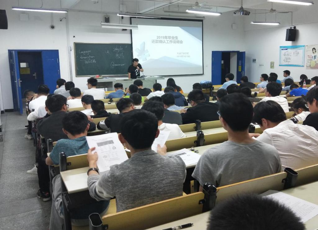 为增强毕业生诚信履约意识,切实做好2019届毕业生生源地信用助学贷款的还款确认工作,机械学院于5月10日晚在6213教室召开2019届毕业生生源地信用助学贷款还款确认工作说明会,会议由机械学院辅导员詹俊老师主持,近百余名毕业生参加了会议。
