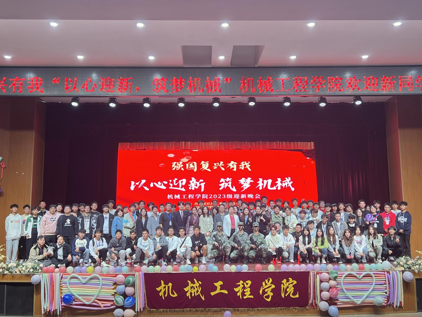 为丰富校园文化和艺术氛围,迎接2023级新生,机械工程学院于10月21日晚,在学校大礼堂举办“以心迎新筑梦机械”2023级新生迎新晚会,学院全体2023年入学新生及全体学生干部参加。机械工程学院分党委书记崔海英、副书记马晓涛,学工办辅导员张倩文、钱坤、陈君妍、高梓洵、杜辰楠参加观演。