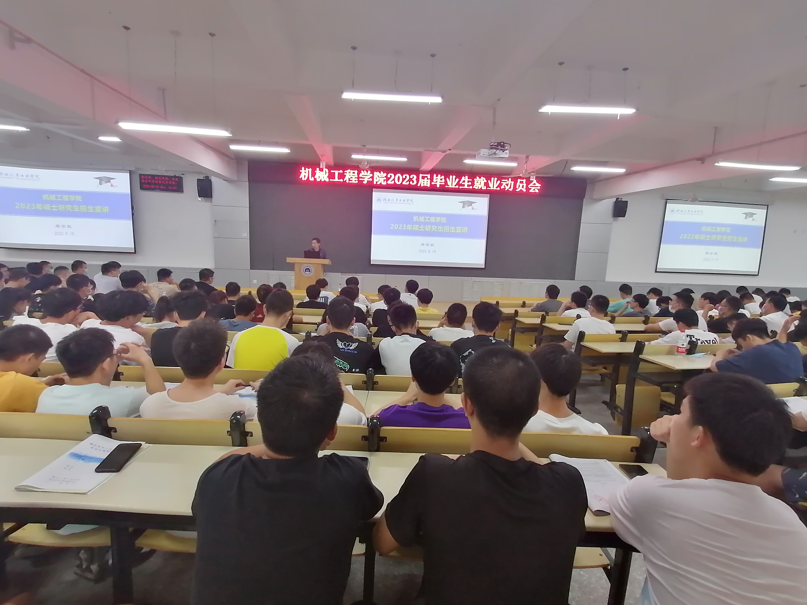 为增强2023届毕业生就业的主动性和积极性,9月19日下午15:00,机械工程学院在6113教室组织开展2023届毕业生就业动员会。机械工程学院副院长周学良,辅导员张倩文、隋建军,2019级全体学生参加会议。会议由辅导员张倩文主持。