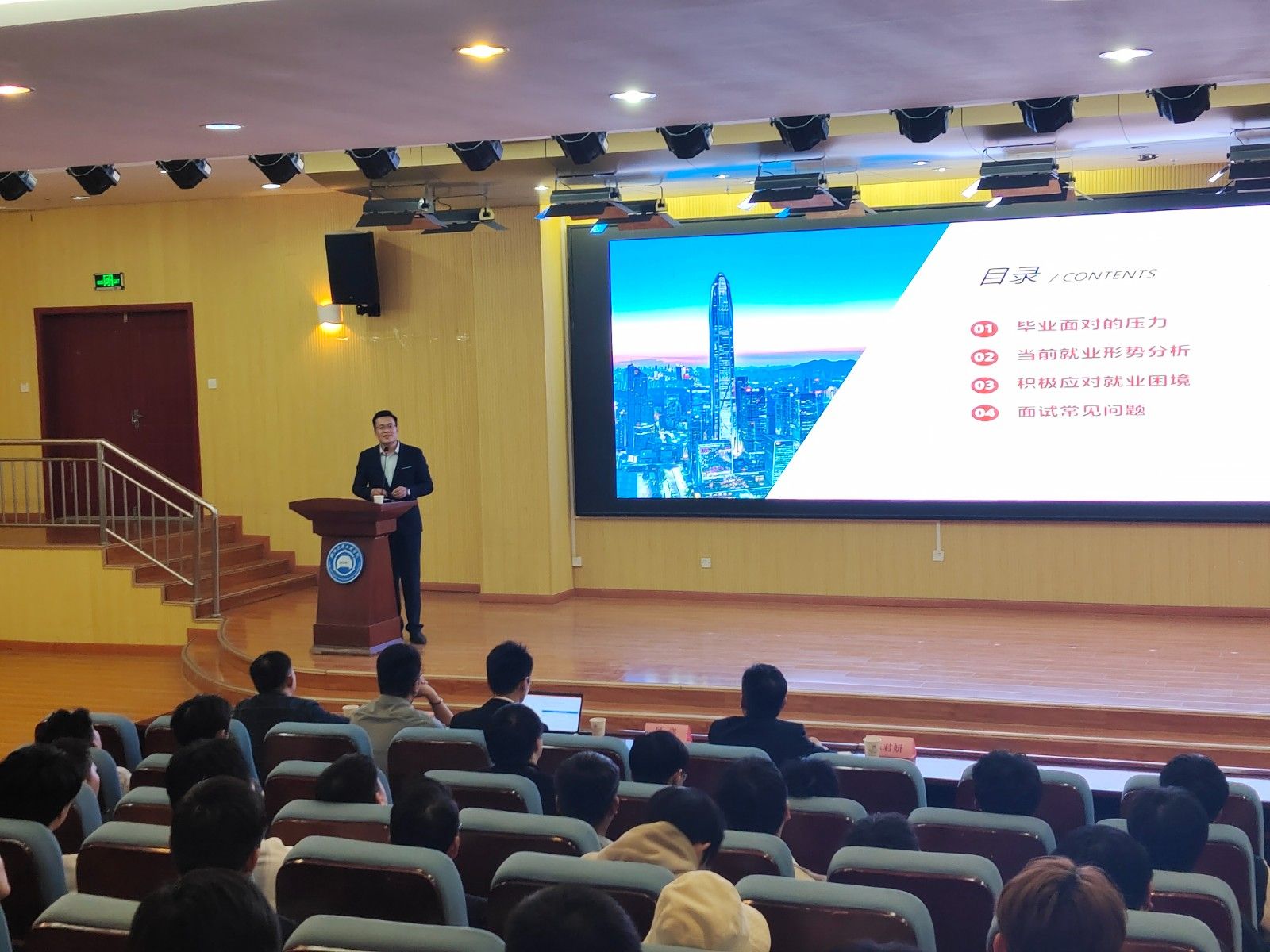 吴洋从当前就业形势、高质量就业市场面临的机遇和挑战、500强公司面试常见问题和解答对策等进行了详细讲解。他鼓舞同学们抓住在校学习黄金期,扎实学好专业知识,积极拓展个人技能,全面提高个人综合素质和能力,磨炼吃苦耐劳的优秀品质,把汽院“求是创新”校训融入个人品格成长!