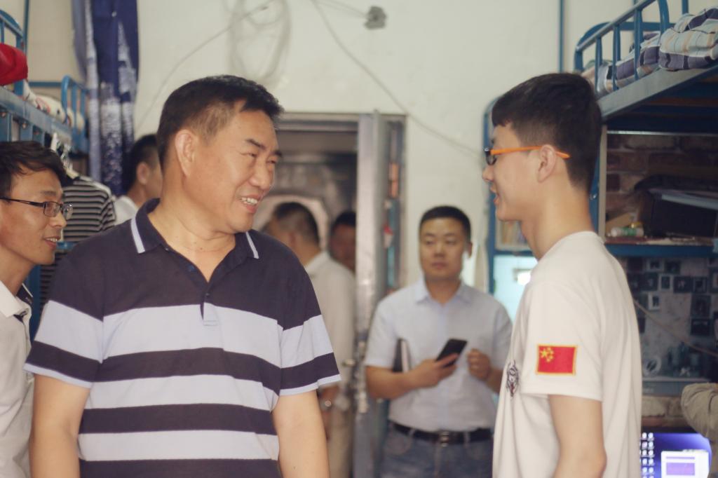 在走访过程中,杨立志书记认真检查了宿舍楼道的线路、监控和卫生问题,咨询了宿舍防盗、空调使用和同学们的学习、生活情况,认真听取了同学们对宿舍和其他设施的意见和建议。杨立志书记鼓励同学们要保持良好的卫生习惯,营造良好的学习和生活氛围,做好疾病防控。在毕业生宿舍,杨立志书记亲切看望了结对学生崔志鹏,了解了毕业生的就业考研情况、论文答辩情况,并希望同学们走出校园后,能心怀志向,努力奋斗;同时要心怀母校,常回校看看。