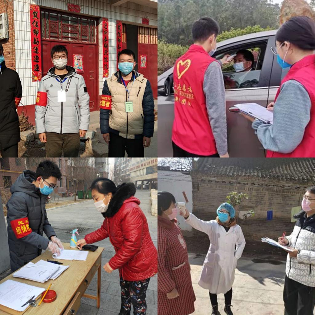 面对疫情防控的严峻形势,广大机械青年学子发挥“党有号召,团有行动”的优良传统,听指挥、勇拼搏、见行动,积极投身疫情阻击战役。机制 171 班学生杨志超在抗疫病期间协助村保卫处在村子里巡逻,保证村子内外无进出活动;测控182班学生曹明铁协助当地村委会在路上拦截车辆登记信息并测量车内人员的体温等;机制166班学生余骁为乡下各个村庄的主要街道巡逻,对在外闲逛、聊天的村民进行劝返;测控172班学生彭谭清在疫情期间入户进行排查登记,帮助村民采购并发放生活物资;测控162班学生周政宇志愿协助社区居委会进行扫楼巡查、收集外地回归人员信息、为社区居民充值天然气卡等工作;测控 172 班学生 李星霖 在四川省协助镇政府给街道上赶集的人测量体温,进行人员信息登记; 产设182 班学生黄佳旭协助村委会设置路障并卡点值守、劝离聚集人群并登记汇报村民身体健康状况;测控172班学生孙宏垚协助村委会进行入户宣传与测量体温工作;机制181 班学生石松涛协助保卫处值守,帮助社区居委会做好入户巡查和信息登记工作;机制166班学生黄贤明协助村委会对每家每户进行体温监测; 设计182班学生郭永豪协助检疫点测体温、过往车辆放行、物资的搬运和过往人员的信息登记;机制185 班学生卞傲强在所在小区进行返工人员入户排查,检查人员是否存在发热现象;机制184班学生王义博协助登记上报全村人的身份信息、电话号码、节后去向等信息;机制181班学生刘依龙协助居委会进行每日居民通行登记和巡视并阻止居民或外来人员翻越围栏,避免疫情传播。
