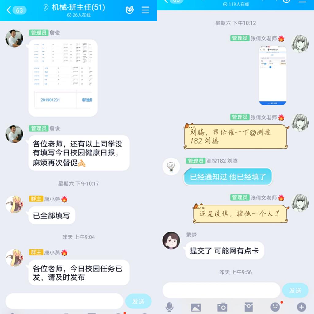 践行初心,保障日报准确,疫情发生以来,机械学院分党委书记宫爱红高度重视学生疫情防控工作,多次通过视频会议传达党中央关于疫情防控的工作部署,强调全院要认真开展学生摸底排查和信息上报工作,信息报送务必真实、准确、全面、及时,确保人人排查到位,齐心协力,共克时艰,为疫情防控“大考” 交上满意答卷。为有效预防和控制新型冠状病毒感染的肺炎疫情,全面掌握全院学生疫情防控“底数”,学院在防控初期便开展了全院师生安全日报告制度,并及时制定应急工作预案,分“加强提醒”、“做好分类”、”重点跟踪”三步走对全院师生的去向、身体健康状况等信息进行全面摸底统计,为学院防疫工作有序开展奠定了坚实的基础。
