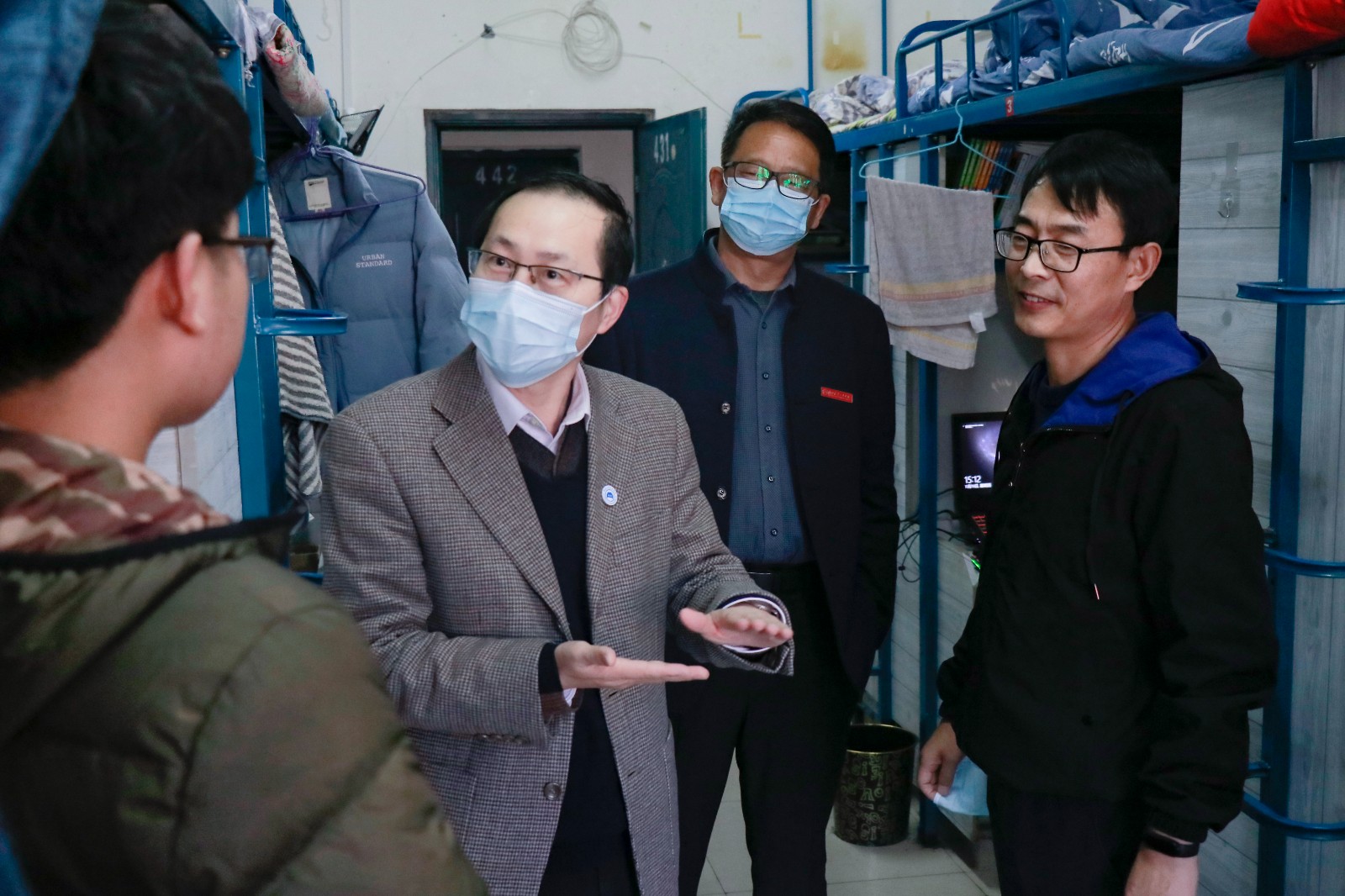 杨立志重点走访了大一学生宿舍,与同学们进行了亲切的交流,详细询问同学们的入住情况和到校感受,并为同学们介绍学校发展、学科建设等有关情况,嘱咐同学们加强自我管理,做好人生规划,快速融入集体,以“三更灯火五更鸡,正是男儿读书时”的态度砥砺奋进,切实提升专业水平和学术素养,建立和谐融洽的人际关系,抓住发展际遇,提升自身价值。在当前疫情严峻形势下,杨立志还深切叮嘱同学们树立家国情怀意识,积极配合疫情防控工作,做好个人防护,保持良好卫生习惯,展现青年学子的担当作为。