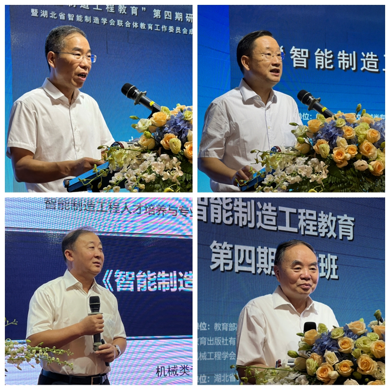 8月7日上午,“智能制造工程教育”第四期研讨班暨湖北省智能制造学会联合体教育工作委员会成立大会在武汉举行。中国工程院主席团名誉主席、中国工程院院士、国家制造强国建设战略咨询委员会主任、中国科协智能制造学会联合体主席团主席周济,中国工程院院士、武汉纺织大学党委副书记、校长、我校双聘院士徐卫林,原东北大学校长、国家教育部机械类专业教学指导委员会主任赵继,武汉工程大学校长王存文,武汉轻工大学校长董仕节,湖北开放大学校长钟毓宁以及我校校长张文学、副校长高刃,武汉华中数控股份有限公司董事长陈吉红等湖北省学术界、企业界的知名专家教授和技术负责人130余人参加会议。
