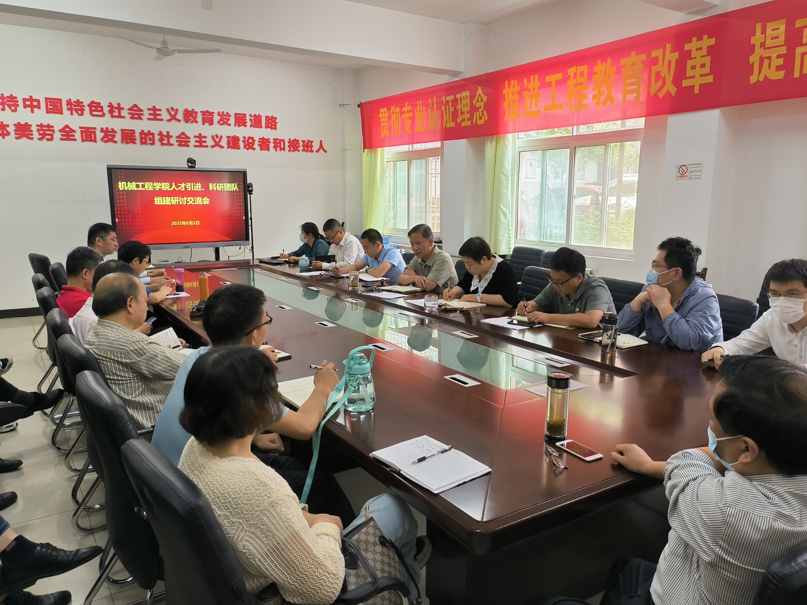 6月1日下午,机械工程学院分党委书记崔海英、院长王保华在机材楼206会议室主持召开了机械学院人才引进和团队建设调研座谈会。会议围绕“人才引进和教科研团队建设”主题,广泛调研,征求意见,凝聚思想共识。副院长陈君宝、王红霞、王宸及学院各系部主任、教授、博士参加了本次座谈会。