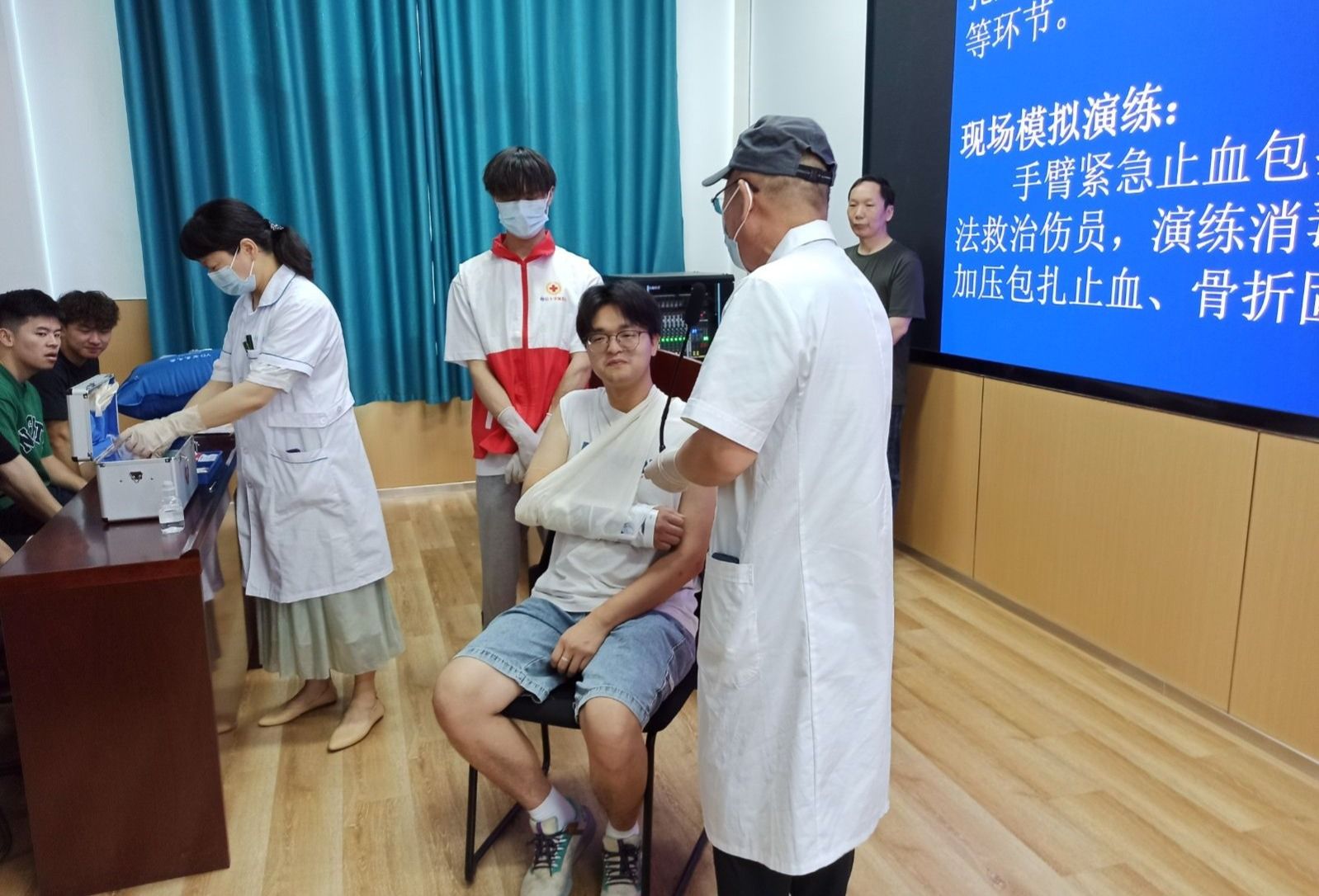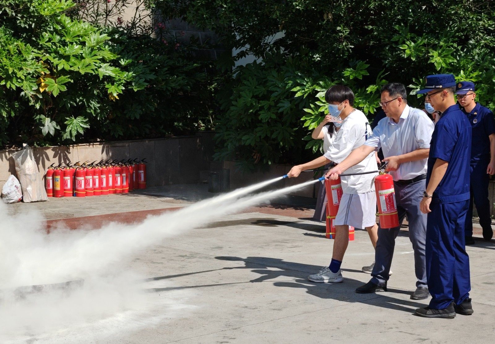 演练活动分为师生参观实验室安全知识展、实验室应急处置知识与方法培训、机械伤害应急演练、火灾紧急疏散演练、灭火实操演练五个阶段,既有应急知识培训,更有实战演练。师生们共同学习安全知识,并亲身体验了急救、灭火等实操。