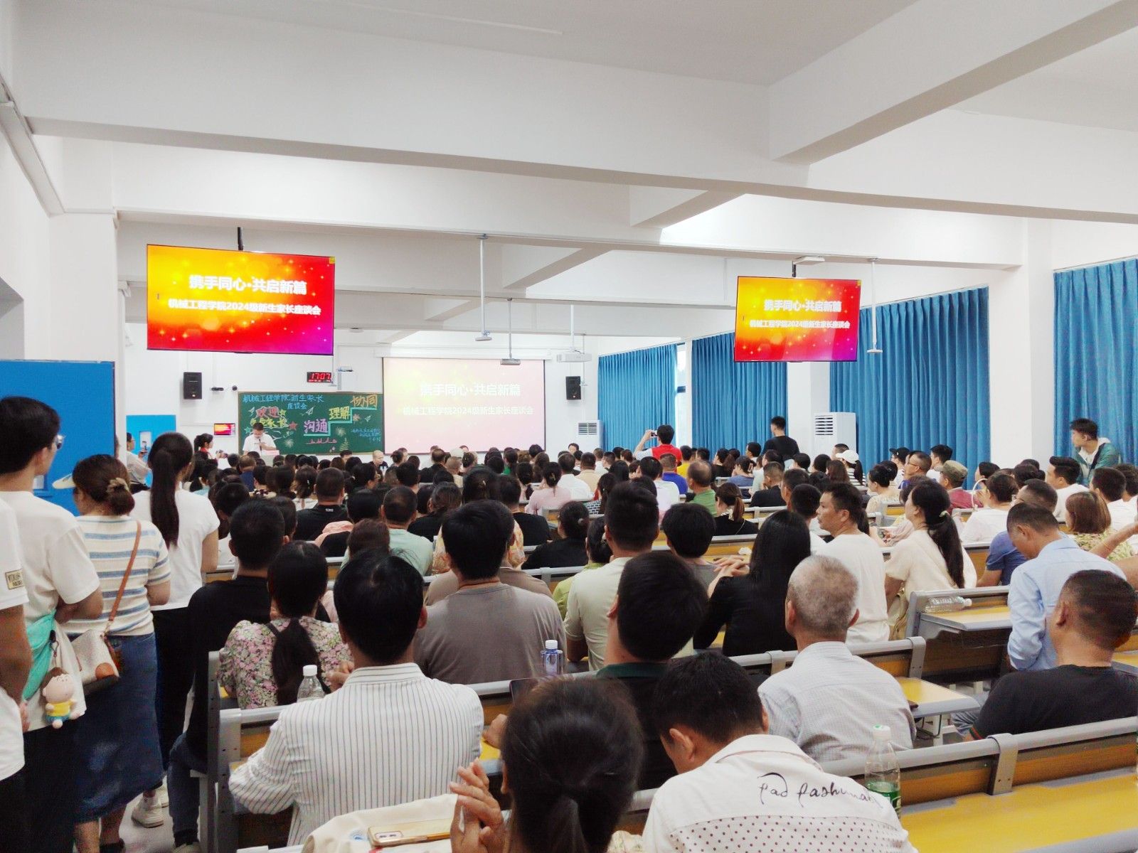 会议伊始,新生和家长们共同观看了学校和学院的宣传片,了解学校和学院发展历程以及近年来在教育教学、科研创新等方面取得的成绩和进步。