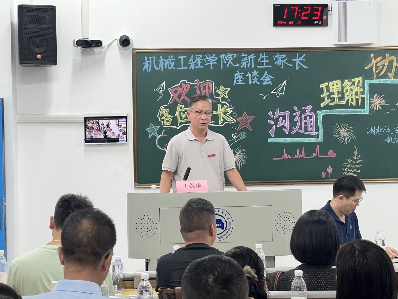 王保华从学院简介、专业特色、学生培养三个方面介绍了学院的发展情况,他表示,学院将进一步强化家校联动,希望家长们能够更多地参与并了解学院的育人工作,通过家校协同共同提升育人的质量和效果。同时,王院长表达了对于2024级新生的期望,期待孩子在大学广阔的平台上拓展视野、锻炼能力,为个人未来的发展奠定坚实的基础。