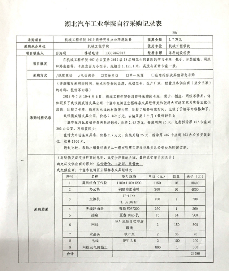 【公示】机械工程学院2019级研究生办公环境改善