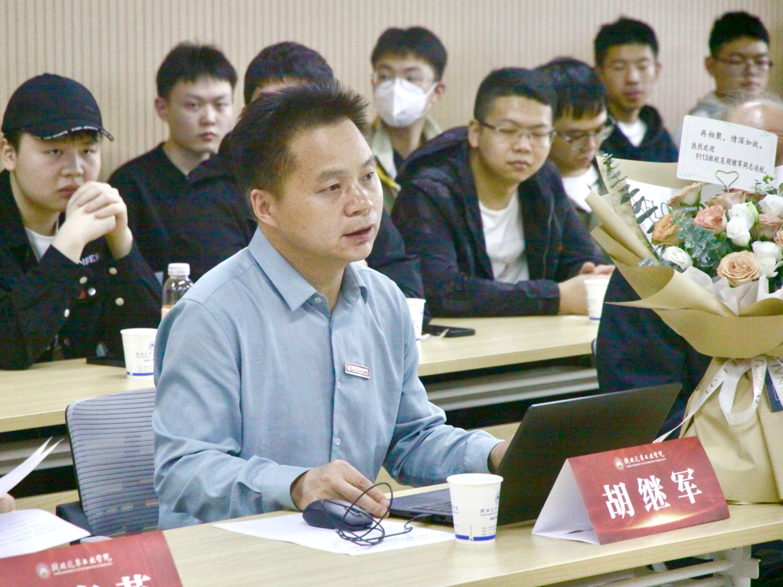 5月9日下午,江苏常隆汽车有限公司副总经理胡继军校友为机械工程学院学子上了一堂生动的思想政治课。学院分党委书记崔海英、原机械工程系主任常治斌教授、学院辅导员、学生代表等百名师生共同聆听了思政课。
