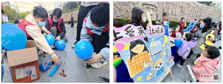 4月2日是第16个世界孤独症日。为了“星星孩子”更好的明天,让更多人看到并了解孤独症群体,助力“星星孩子”获得一个无障碍的生活环境和更加理解包容的社会环境,4月1日,机械工程学院青春火志愿服务队与十堰市残联、十堰市茅箭区残联、十堰市茅箭区妇联,在六堰文化广场共同开展“壹家人,不孤独”的世界孤独症日蓝色行动线下倡导活动。
