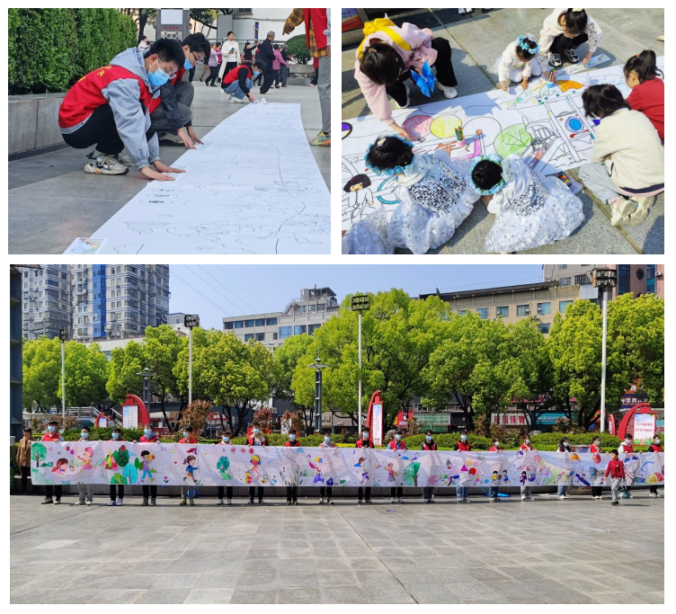在“百米画卷”画卷活动中,青春火志愿服务队的志愿者们与孩子们一起执笔书画,帮助“星星的孩子”完成绘画,一起画出孩子们心中欢乐生活的美好画卷。
