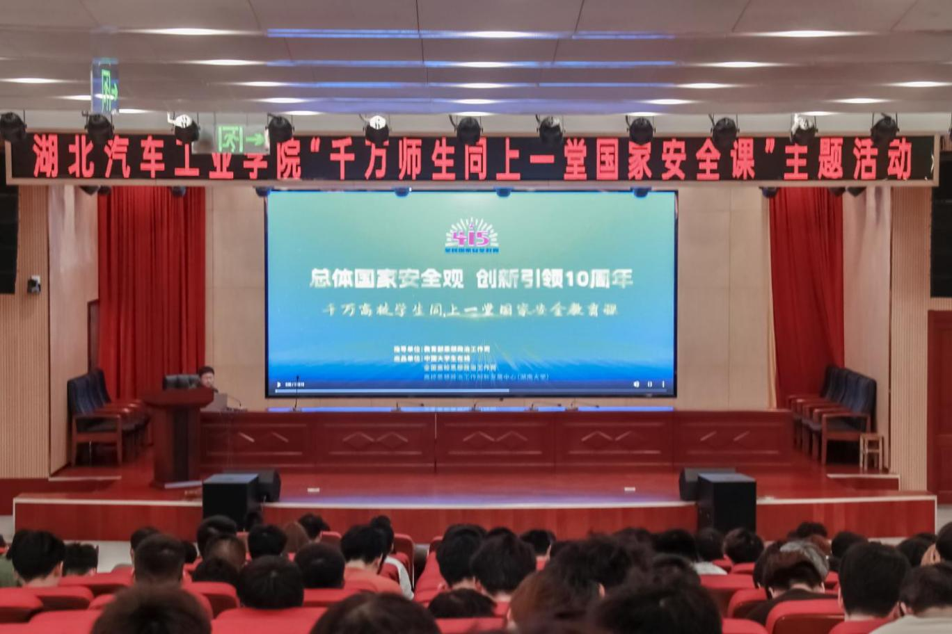 本网讯(文/钱坤、胡安怡、杨耀钧)在第九个全民国家安全教育日到来之际,4月14日下午,学校组织来自学校400余名师生在产教大楼四楼报告厅,集中参加学习教育部组织的“千万高校学生同上一堂国家安全教育课”主题教育活动。