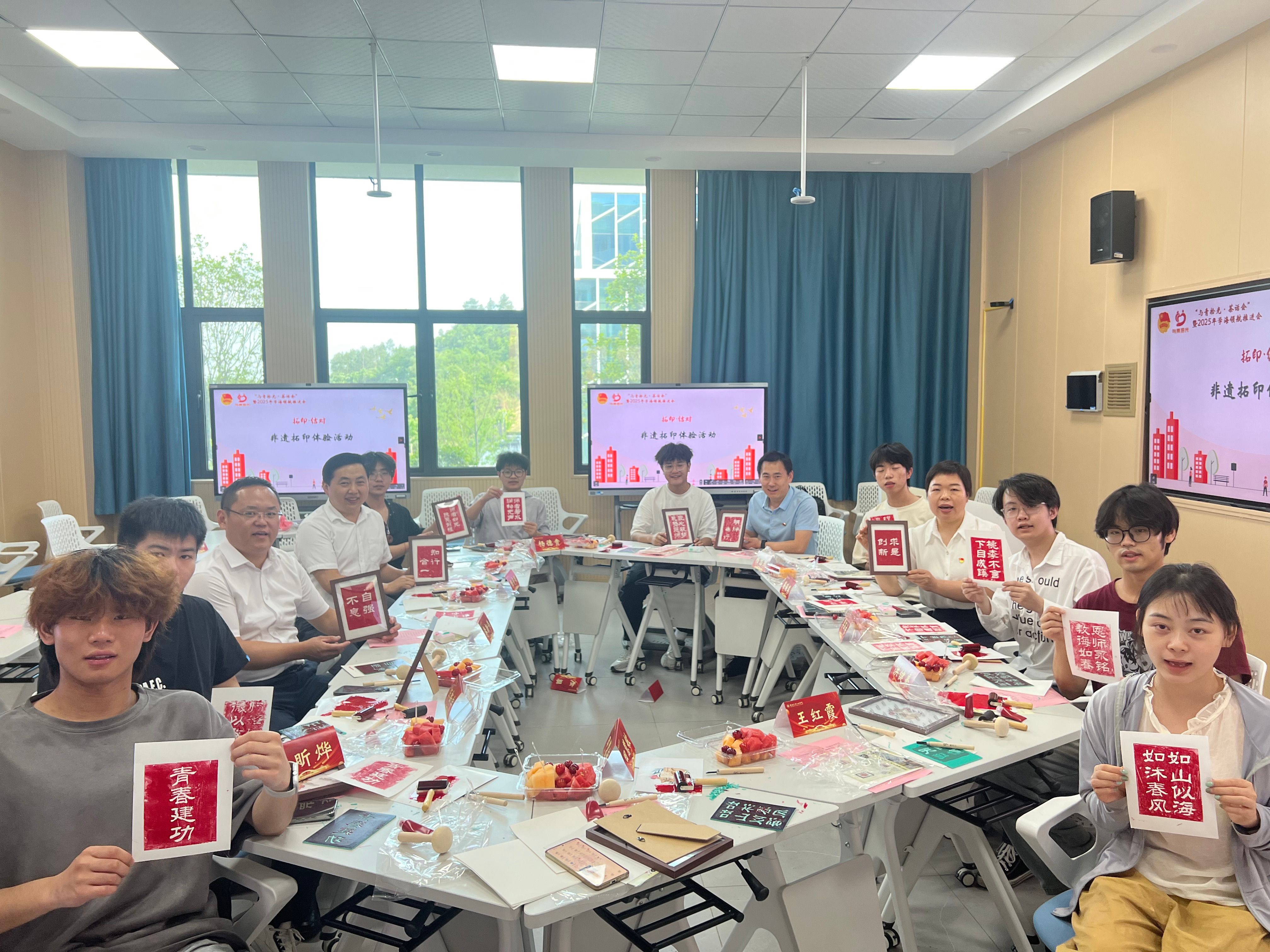 “拓印·结对”环节,结对师生共同开展非遗手工体验活动。结对师生共同完成“求是创新”“自强不息”等拓印作品,以非遗文化为纽带,让师生在协作中打破距离感,共同拓印成长寄语,完成结对仪式。