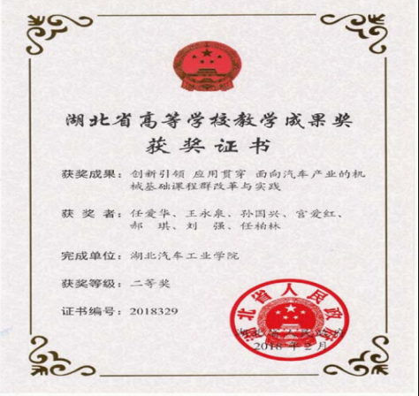 任爱华,三级教授,硕导,“湖北名师工作室”主持人,汽车传动优化与控制学科团队负责人,研究方向为机械设计及理论。负责的机械基础课程教学团队和机械设计教研室获批为省级教学团队和省级优秀基层教学组织;负责的《机械原理》课程获批为“省精品资源共享课程”及“省线下一流课程”,主持的教改项目获“省高等教育教学成果奖二等奖”。