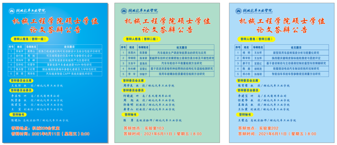 机械工程学院硕士学位论文答辩公告
