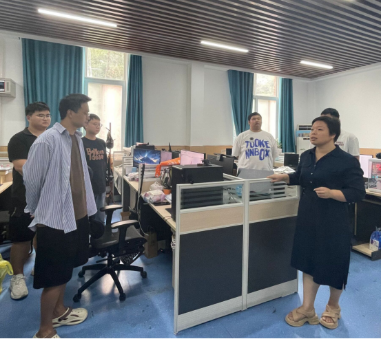 在研究生工作室,崔海英看望了正在专心撰写论文,备考考公的学生。崔海英、王红霞与同学们交流了假期安排与规划,对大家在炎热夏天仍然坚持学习的精神表示了充分肯定和高度赞赏。她勉励同学们珍惜暑假时光,合理制定目标和计划,持之以恒、直面挑战、克服困难、坚持到底,努力实现自己的梦想,也叮嘱同学们要注意劳逸结合、加强锻炼、健康生活。