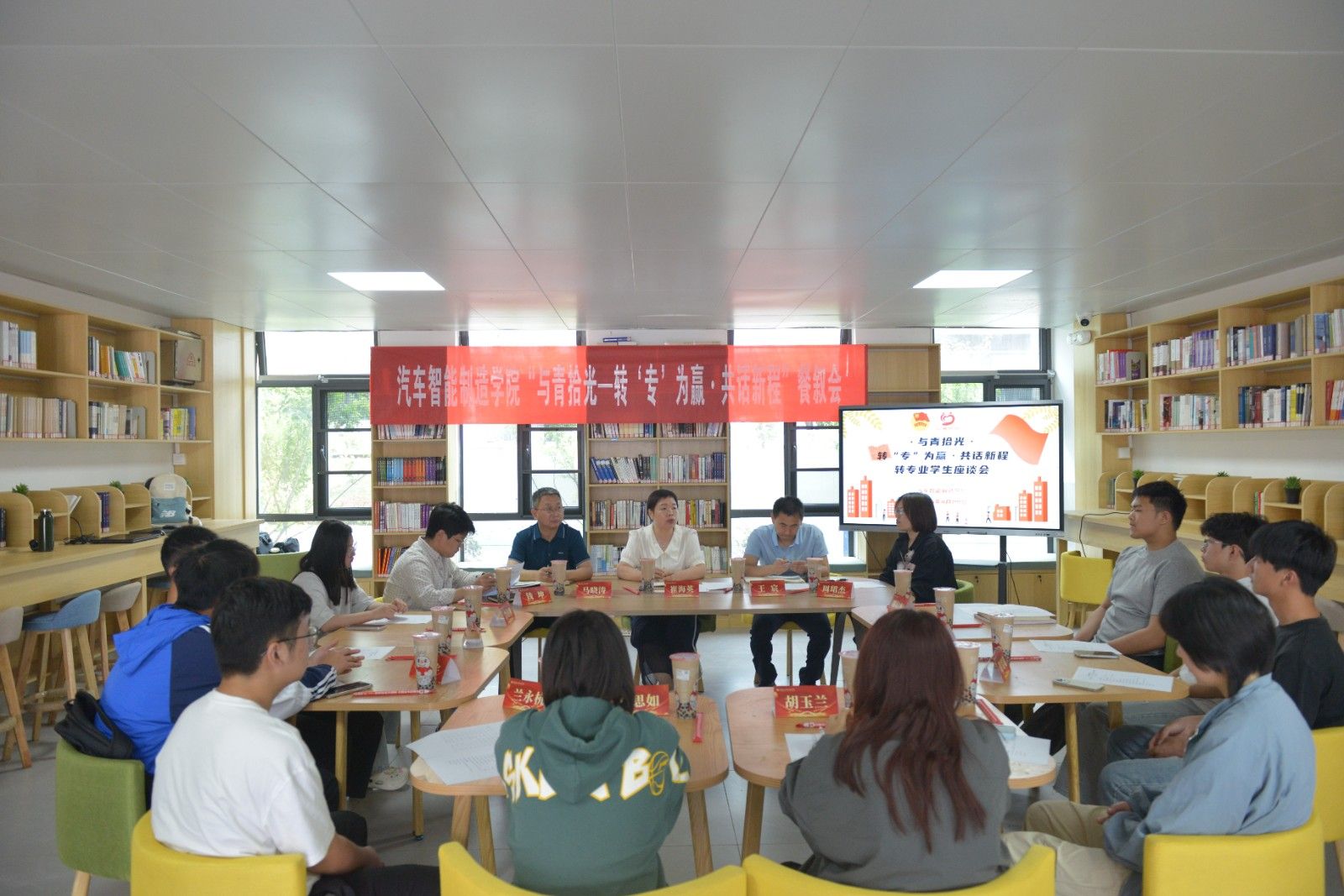 本网讯(文/杜辰楠)4月29日,TYC234CC太阳成集团在梅园一站式社区举办“与青拾光—转‘专’为赢·共话新程”转专业学生座谈会,TYC234CC太阳成集团党委书记崔海英、副书记马晓涛、副院长王宸、团委副书记钱坤、教科研办副主任周珺杰及10名转专业学生代表参加活动。