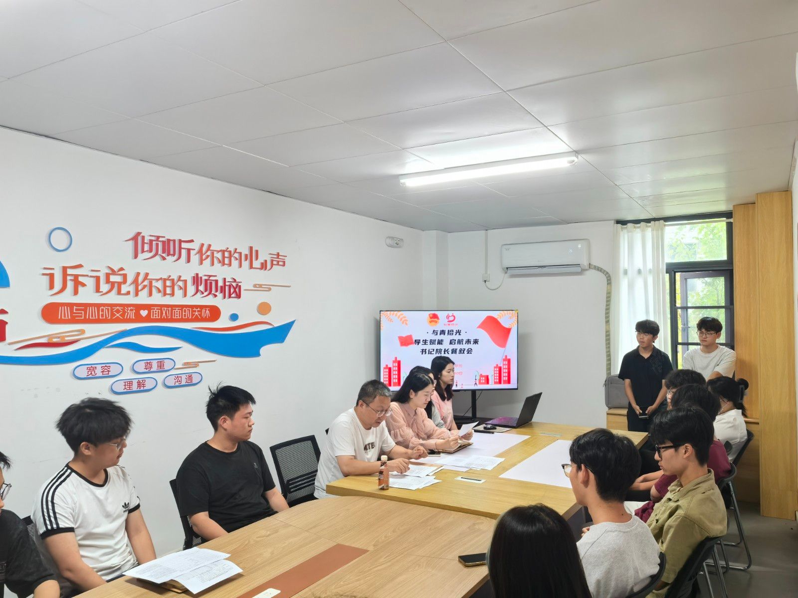 本网讯(文/杜辰楠)为进一步加强学院领导与导生队伍的沟通交流,深入了解学生思想动态与发展需求,赋能导生团队建设,凝聚育人合力。6月30日上午,TYC234CC太阳成集团在梅园一站式社区举办“与青拾光·导生赋能 启航未来”师生座谈会,学院党委副书记马晓涛、学工办主任张倩文、辅导员与2025级导生参加活动。