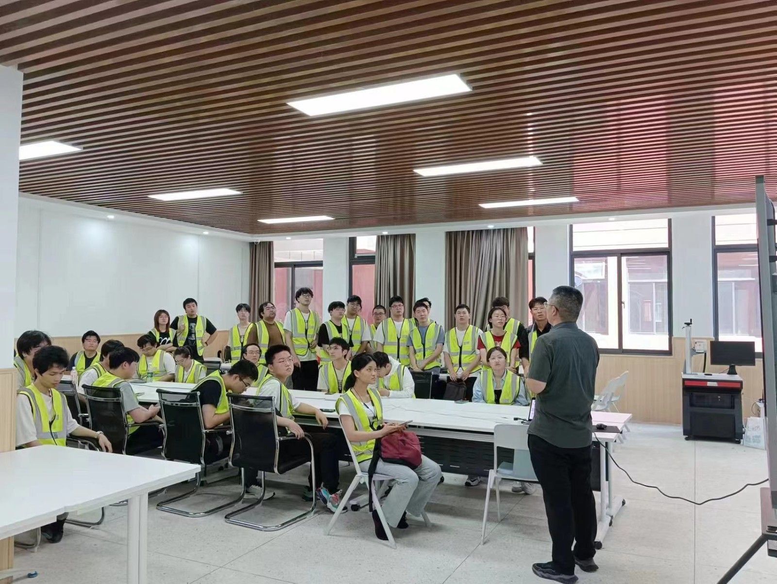 本网讯(文/图 褚晓雯)校际交流促成长,并肩携手谱芳华。5月27日,上海海洋大学机械设计制造专业83名学生到我校汽车智能装备专精特新产业学院实习实践基地开展交流活动。